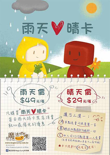 凡購買雨天心情卡,當日雨天持卡來店消費就以最陽光優惠招待您