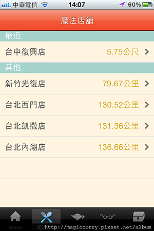 1.進入《魔法店舖》可得知目前離您位置最近分店與距離。