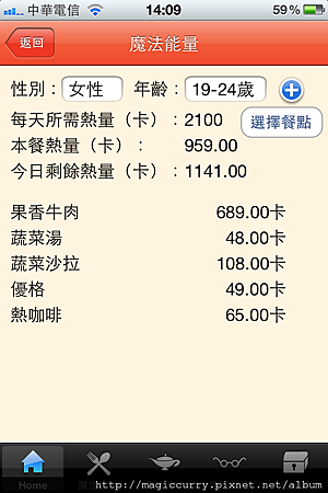 7.點擊魔法能量圖示,可簡單算出您今日用餐熱量。