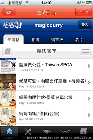 3.點擊魔法咖哩Blog圖示,可連結至魔法咖哩部落格。