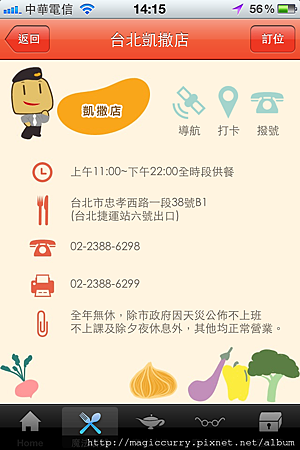 2.點選店家後,可獲得店舖資訊、導航、FB打卡以及線上訂位。