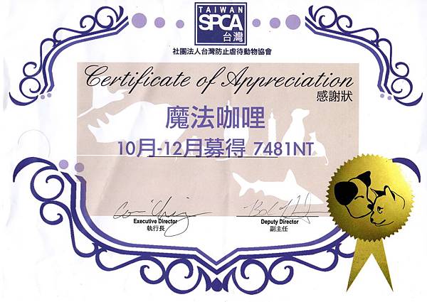 魔法咖哩與SPCA台灣防止虐待動物協會一同合作幫助受虐動物公益活動