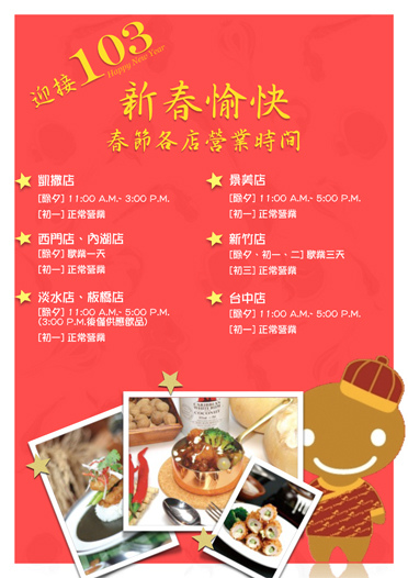 [除夕1/30] A.M.11:00~P.M.5:00 ( P.M.3:00後僅供應飲品)